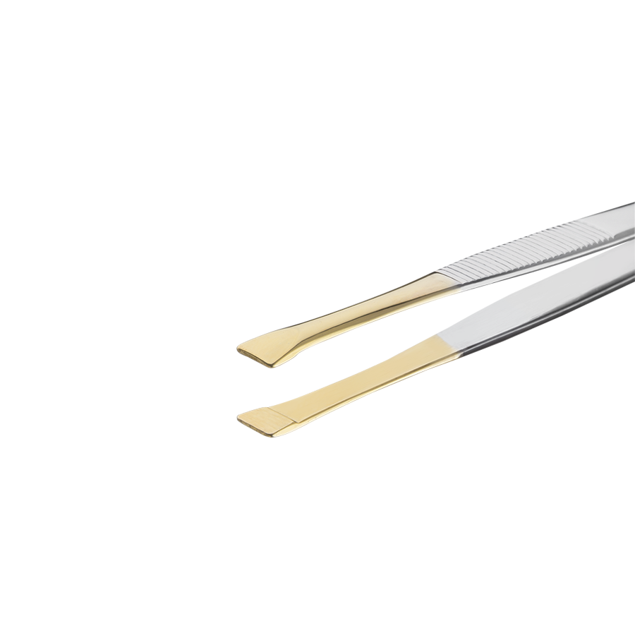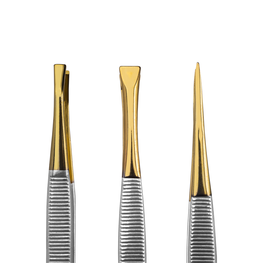 The straight tweezers are ideal for thick and resistant hair. They are made of sterilizable stainless steel, they have a golden tip that facilitates the visualization of hair and helps with precision tasks.