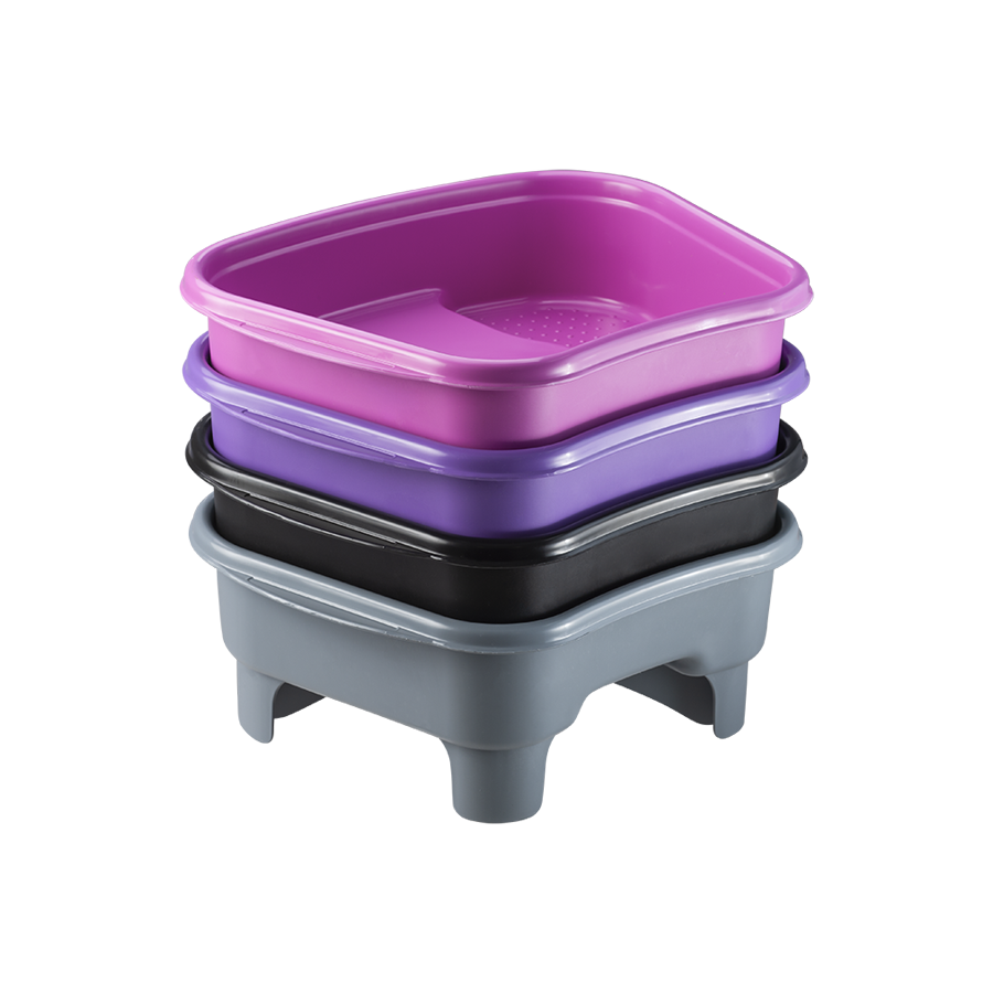 It has an anatomical shape, with ample space to accommodate the feet. The texture in contact with the soles of the feet is shaped like microspheres, which promote skin comfort and relaxation. It is made of highly resistant material to chemicals, it facilitates cleaning and provides durability. The pedestal incorporated in the base that increases the distance from the floor to maintain the ideal water temperature for a longer time is a highlight.
