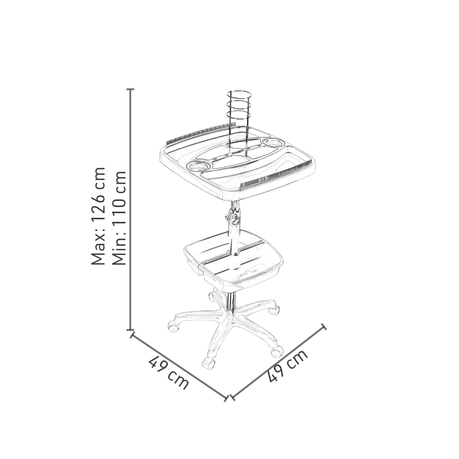 Structure: Its structure is made of injected polymer and it has steel rod and height adjustment, allowing the professional to work standing or sitting. It has a support for bowls coupled with adjustable rods;