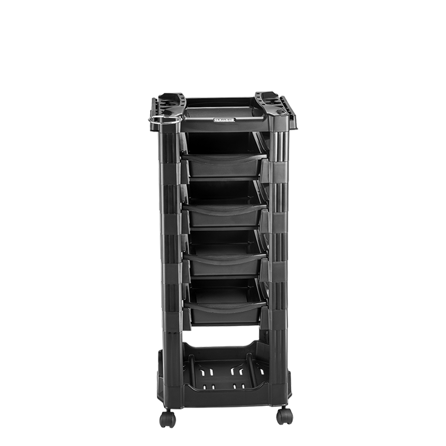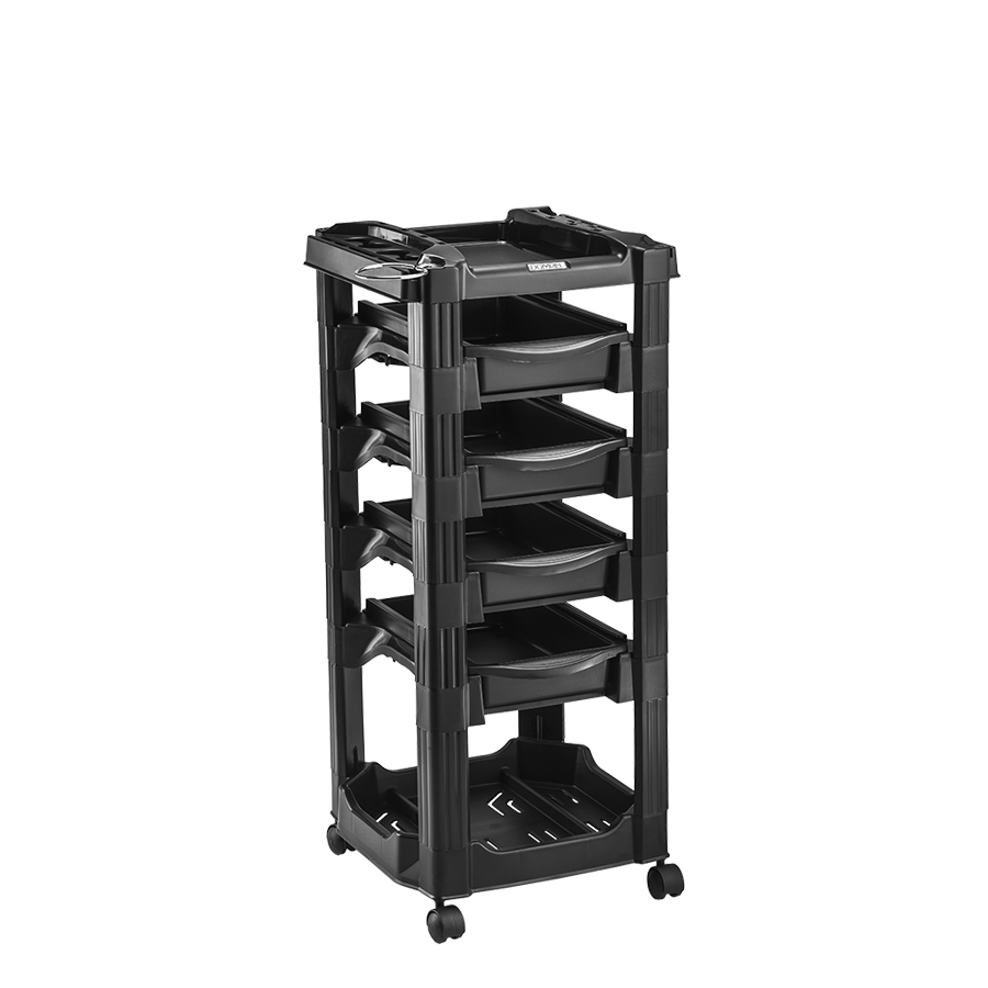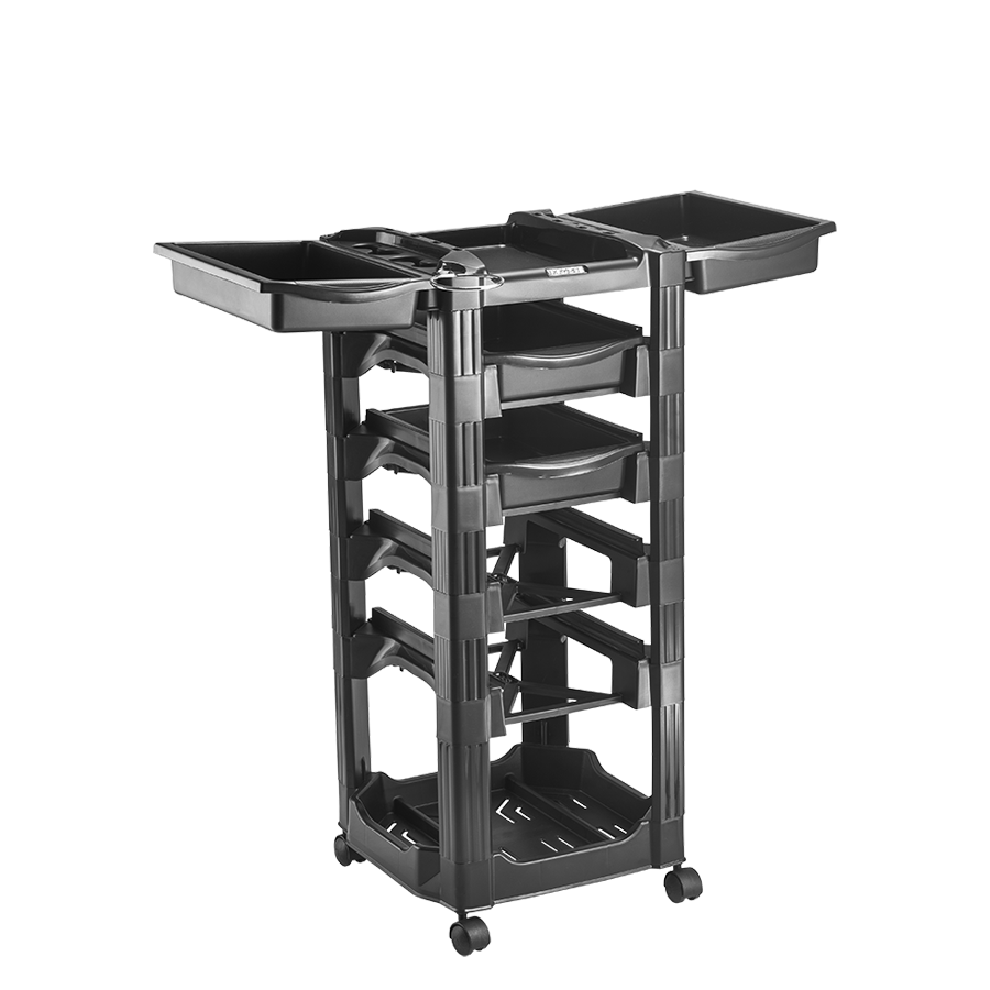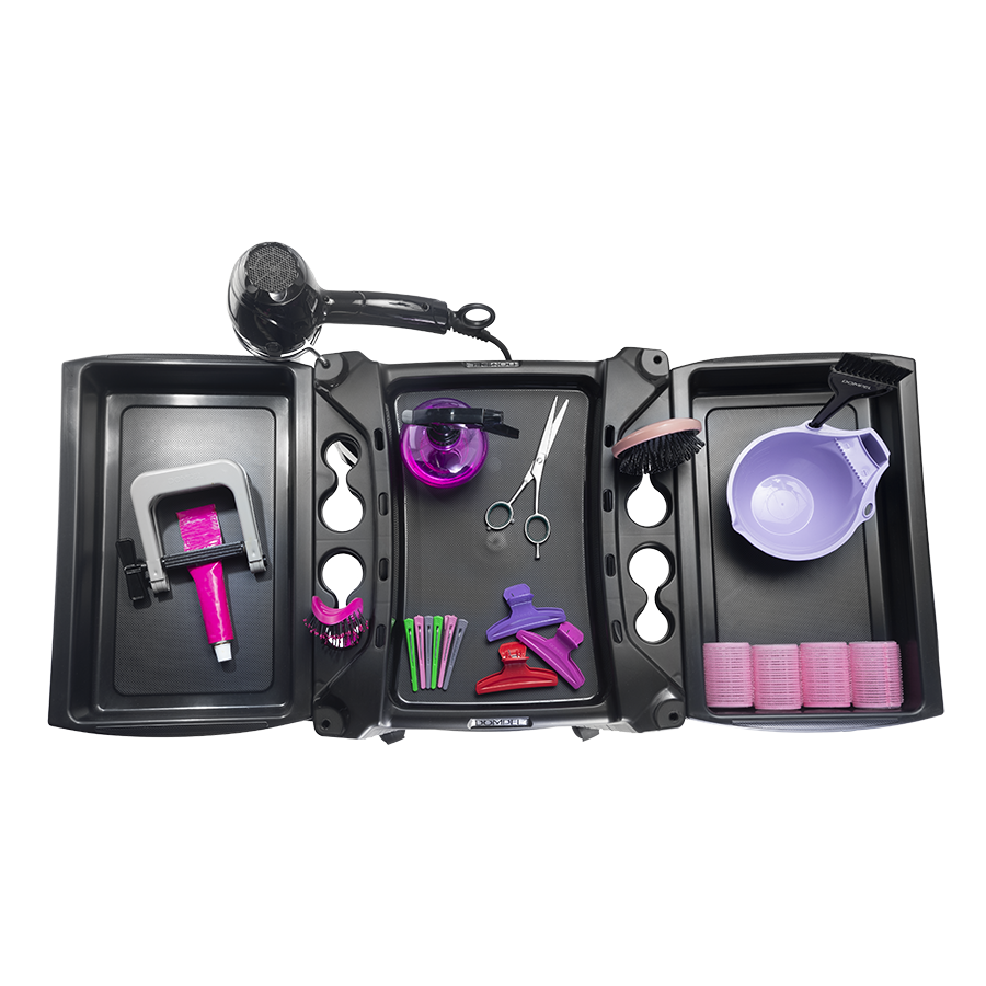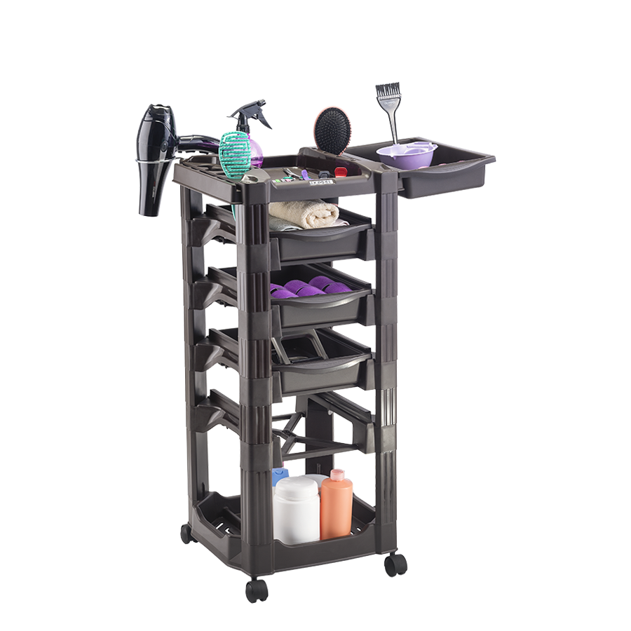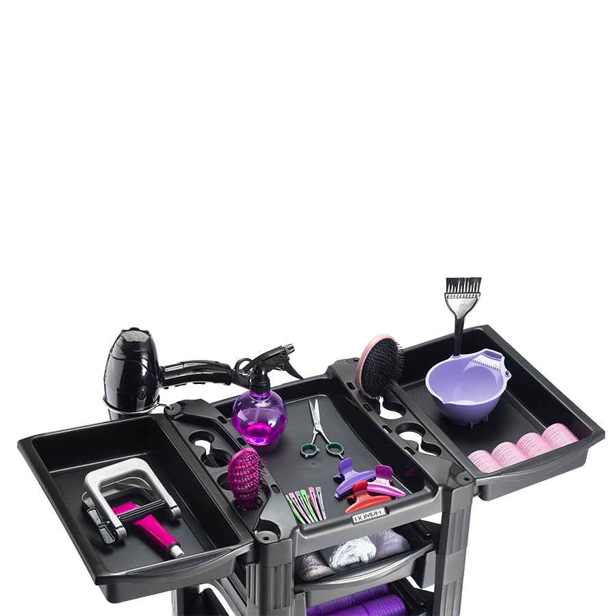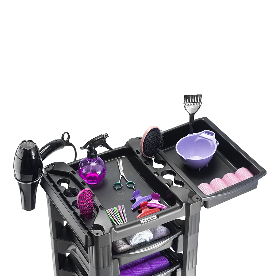Top: The top has support for hair dryer, brush, brushes and scissors. It is possible to triple its size and the work area, by coupling two side drawers, which allows it to accommodate more accessories;