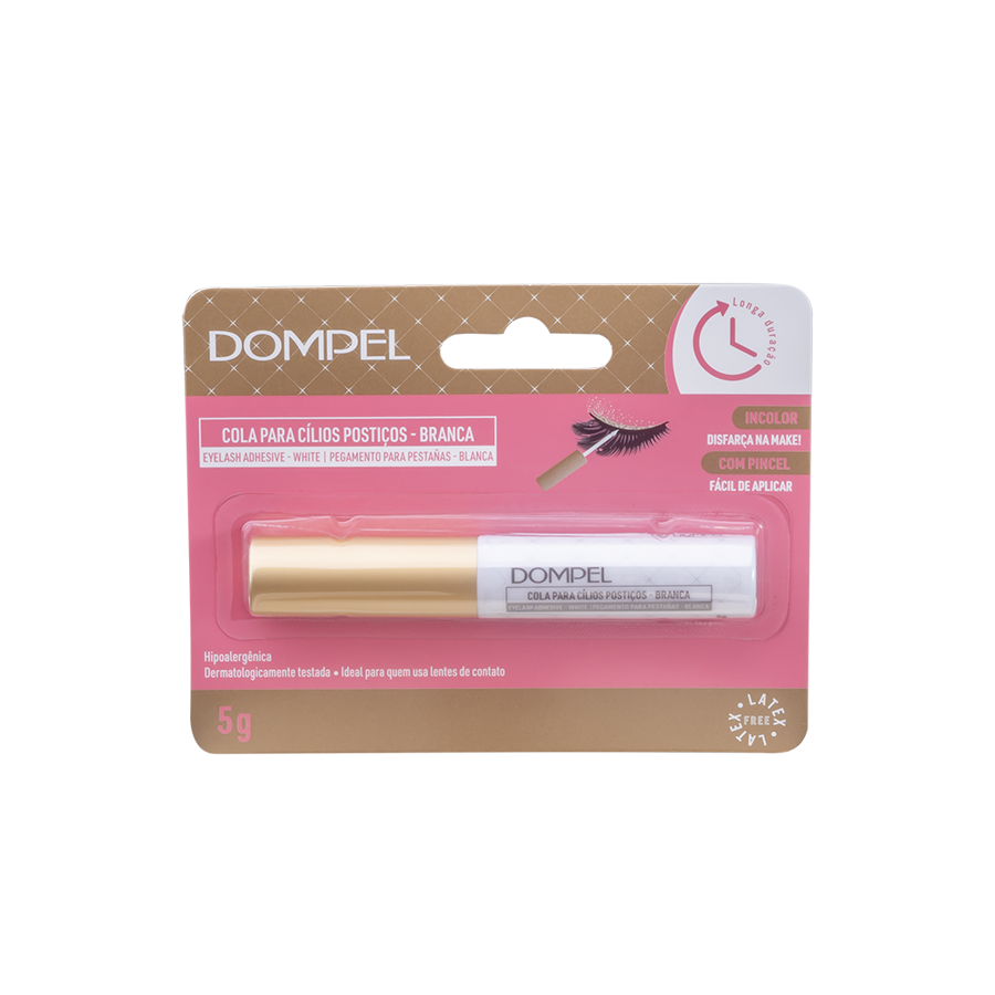 Los Pegamentos para Pestañas Dompel tienen una súper fijación de larga duración, son hipoalergénicos, testados dermatológicamente / oftalmológicamente e ideales para quienes usan lentes de contacto. De secado rápido y sin manchar su fórmula está libre de látex y formaldehído. A prueba de agua.