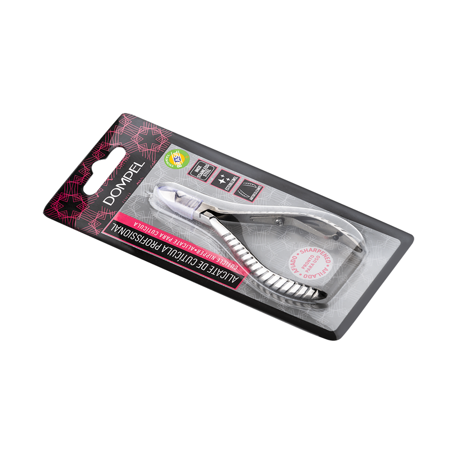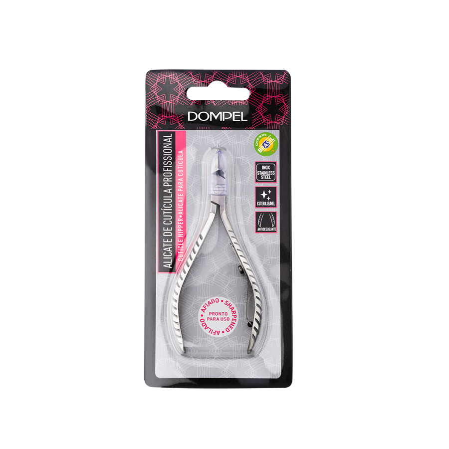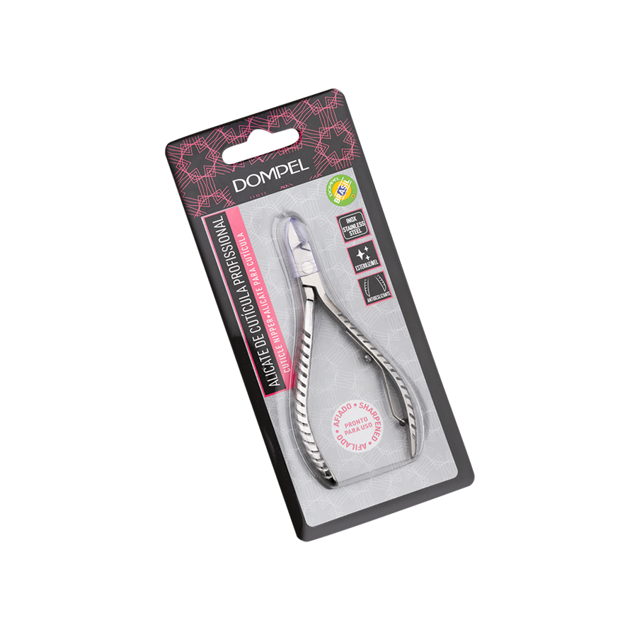 Fabricado en acero inoxidable, el alicate profesional de Dompel asegura la eliminación de las cutículas de una forma cómoda y eficaz. Fácil de usar, permite una mayor seguridad en el manejo, ya que los mangos antideslizantes aumentan la fricción. Su cuchilla tiene un ángulo para alcanzar en las regiones más difíciles. Cuchilla fácilmente afilada siempre que sea necesario. Para garantizar una mayor durabilidad, no lo utilice para cortar uñas y cutículas secas. Evite golpear la punta de la pinza y la caída, ya que dañará el producto.