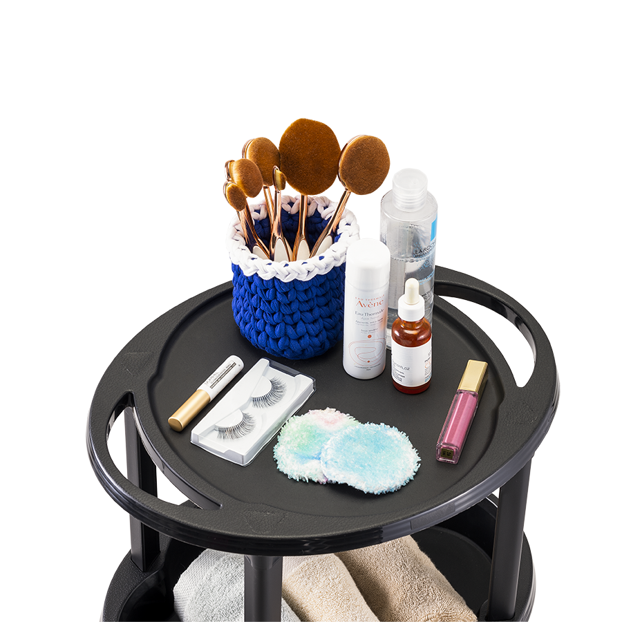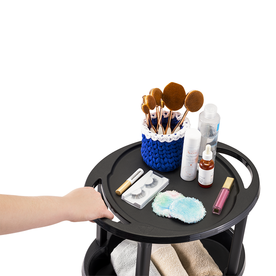 Bandejas: Contiene 3 bandejas de plástico liso con fácil acceso, que promueven la funcionalidad al organizar / acomodar productos y accesorios;