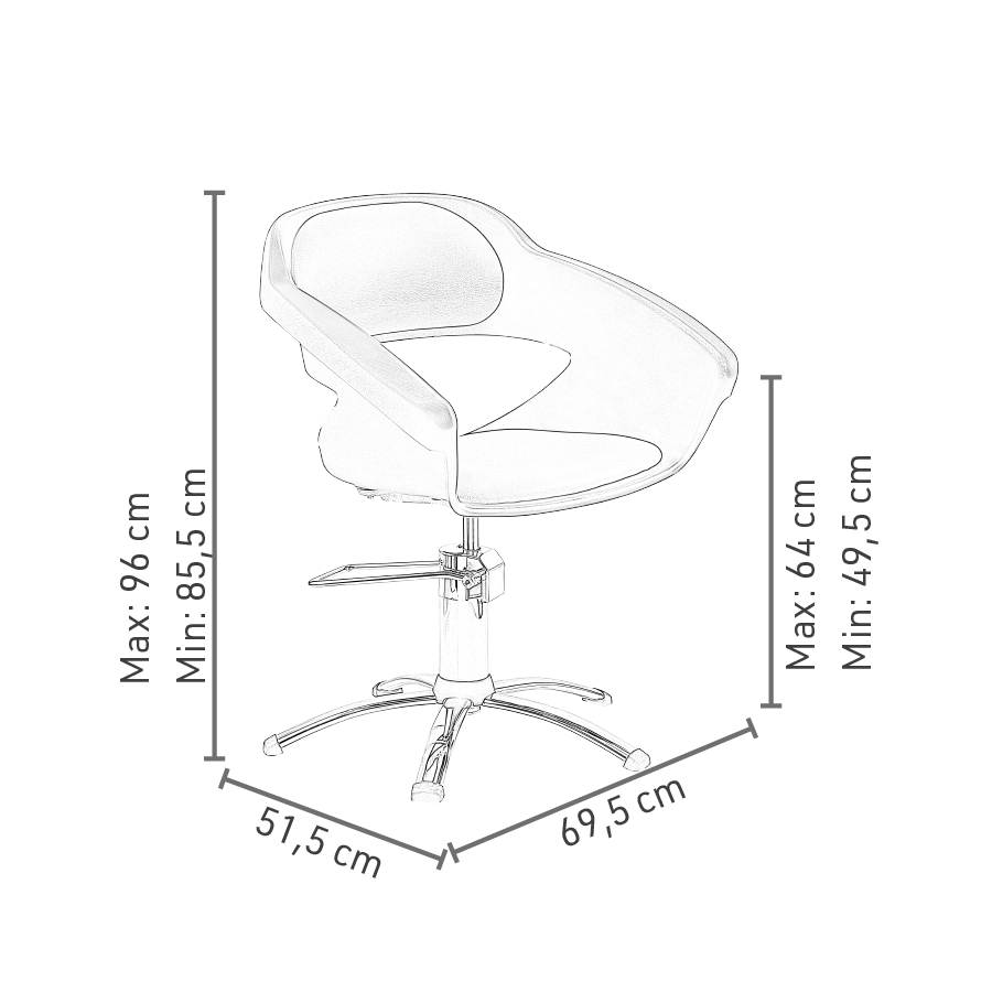 Base: Tiene una base estrella cromada antideslizante, que proporciona un mayor agarre y estabilidad. Su sistema hidráulico garantiza precisión durante el ajuste de altura y freno;