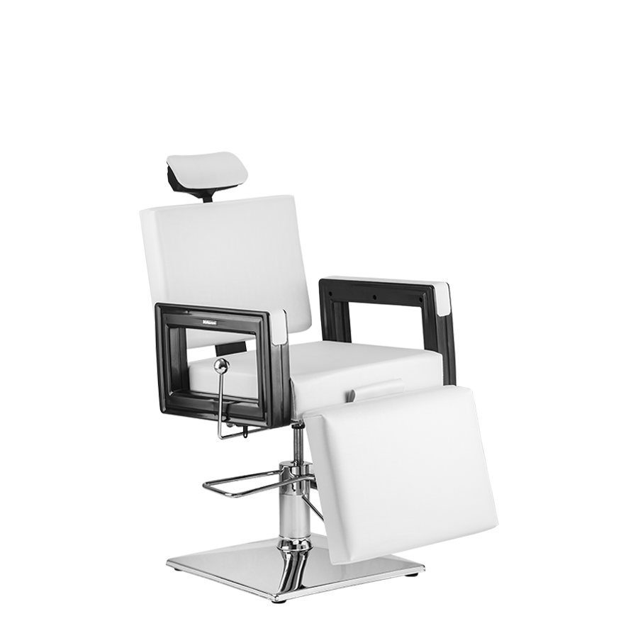 Respaldo: Square Make tiene un apoyo de cabeza ajustable en altura, además de un sistema de respaldo reclinable a gas con manilla lateral de acero cromado. Se adapta perfectamente a las necesidades del profesional;