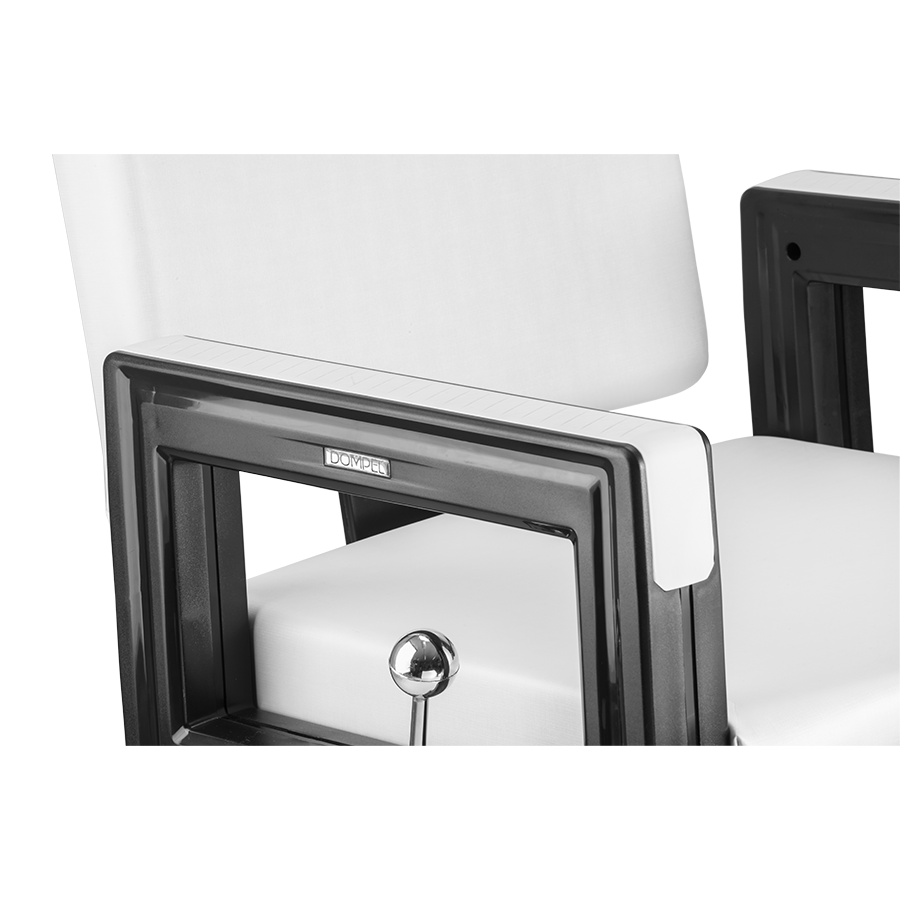 Apoyo de piernas: Para mayor comodidad del cliente y ergonomía del profesional de belleza, la silla Square Make tiene un apoyo de piernas con operación de pistón neumático, lo que garantiza un rango ajustable de hasta 90°;