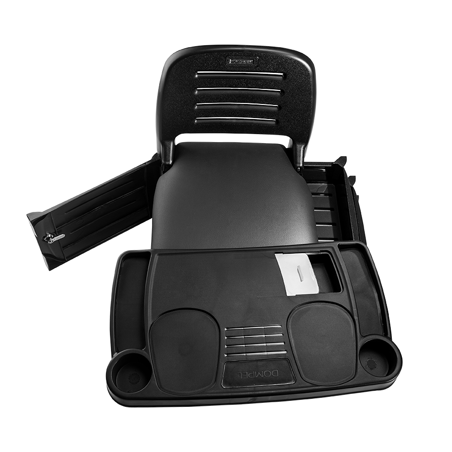 Cajones: Contiene 3 cajones auxiliares, más una puerta con llave que da acceso al compartimiento;