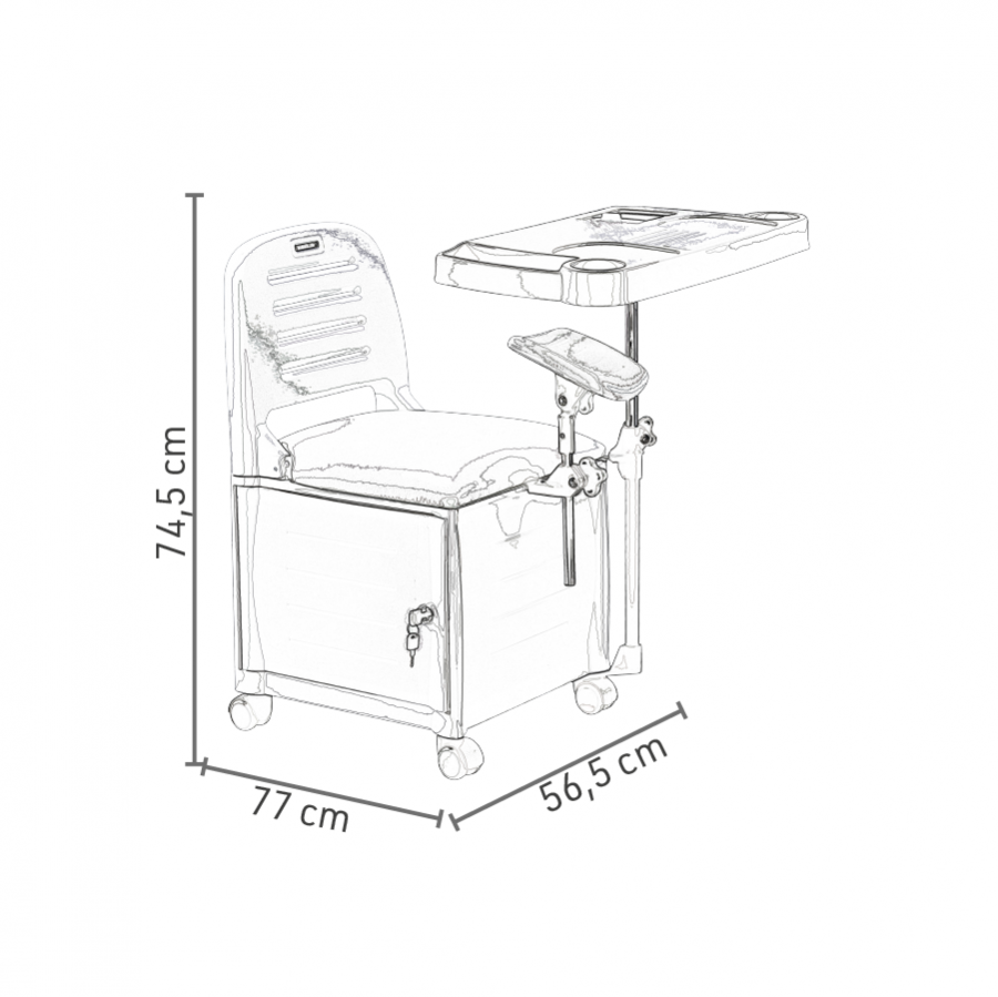 Mesa: Su mesa es multifuncional y extraíble, con un sistema de ajuste de altura anatómico y robusto. Contiene nichos para algodón incorporado, con tapa deslizante, soporte de acetona, recipiente anatómico y soporte para objetos laterales;